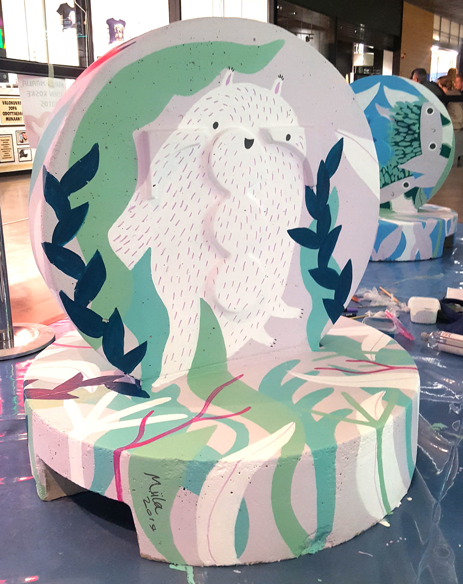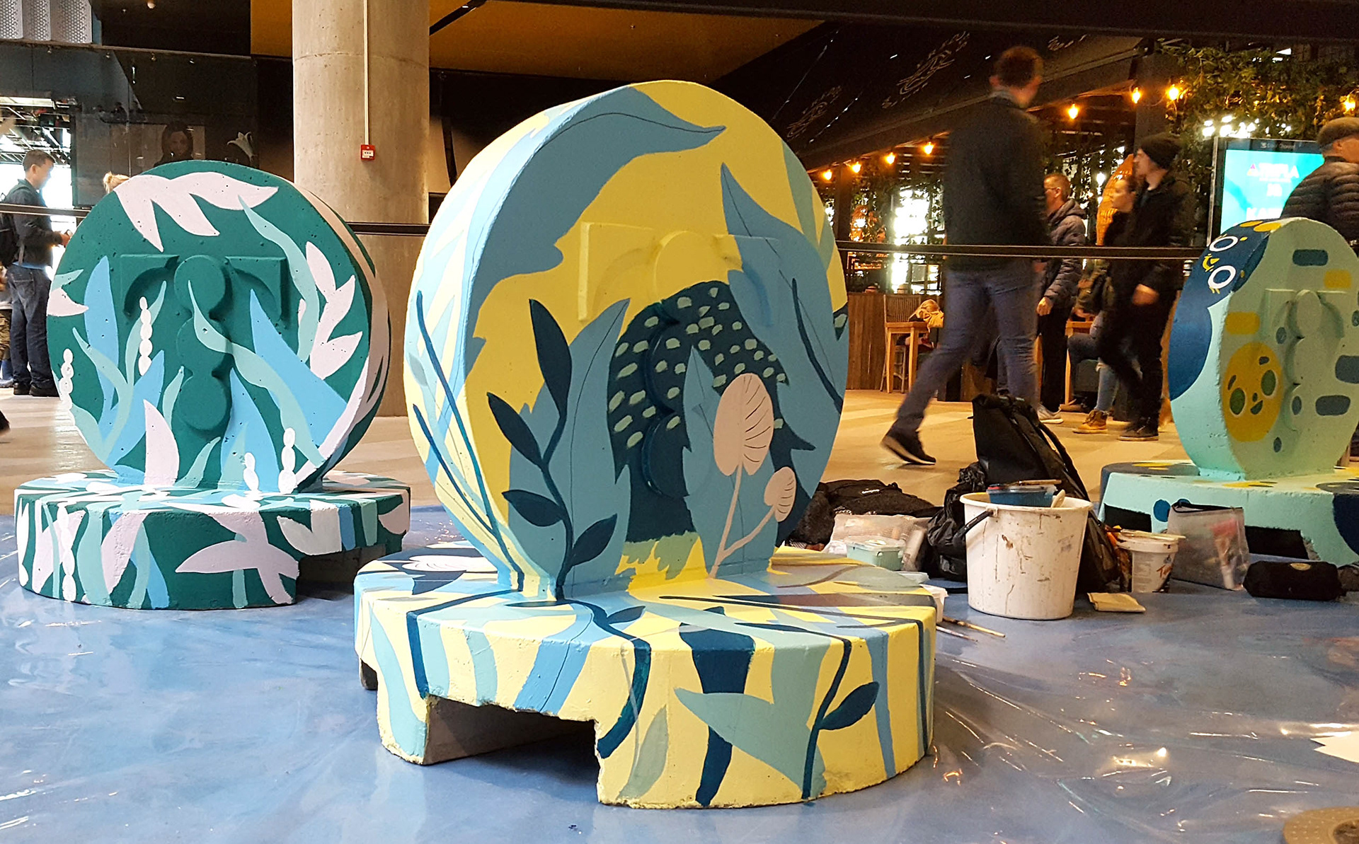 Client work: Painting colorful creatures at the opening event of the
