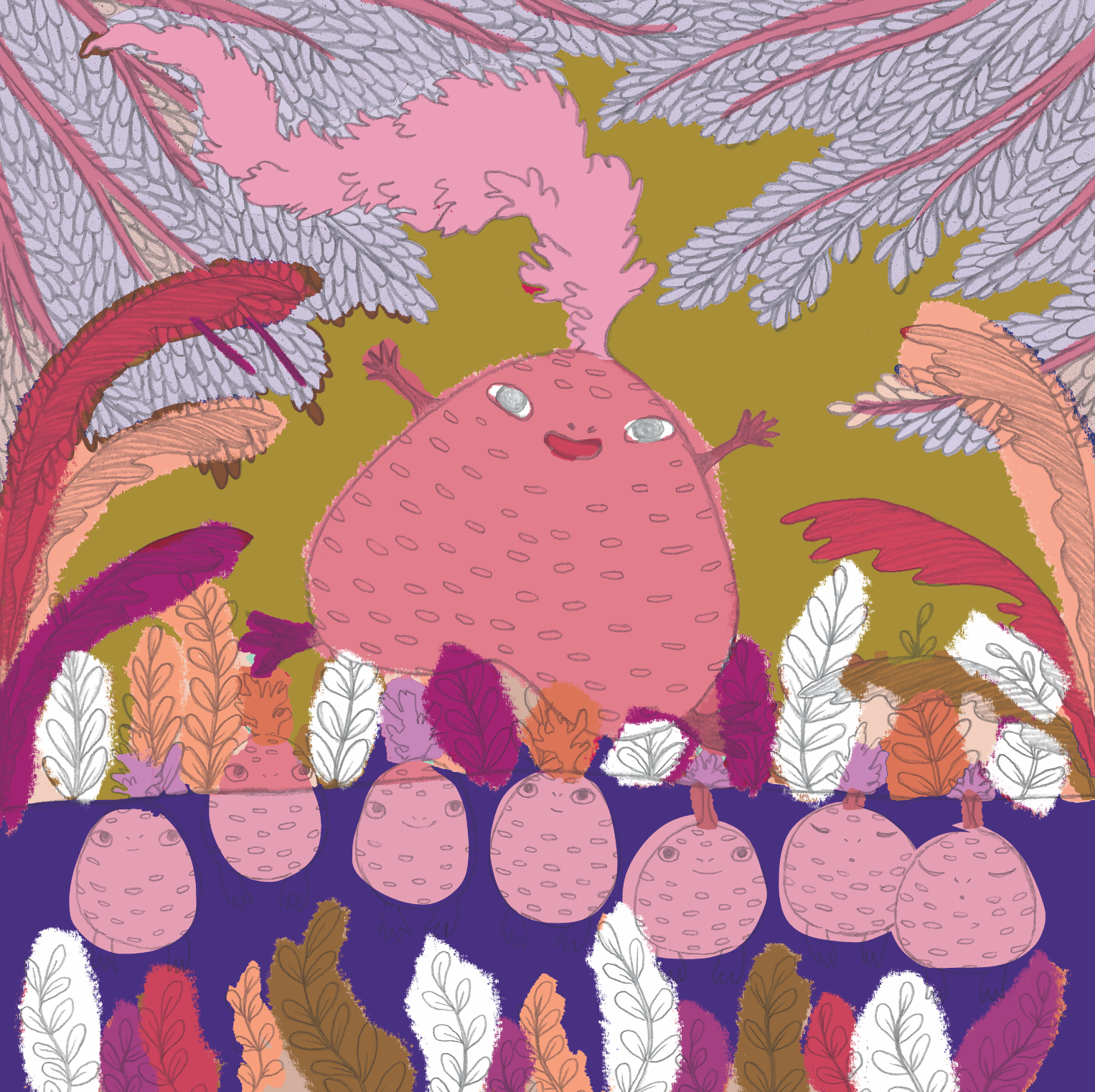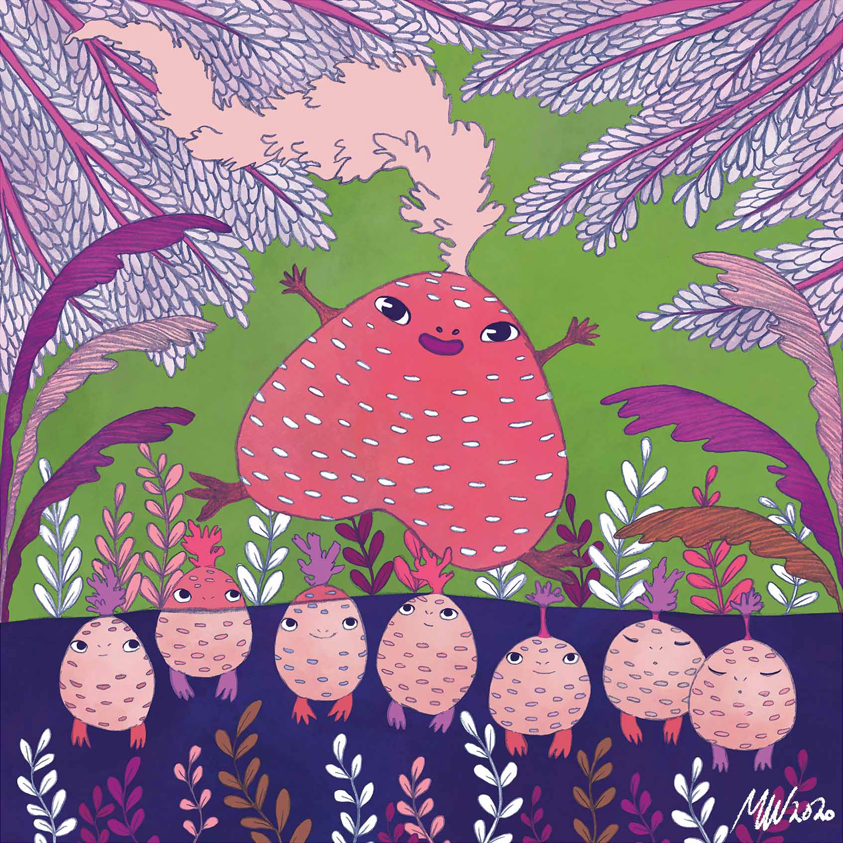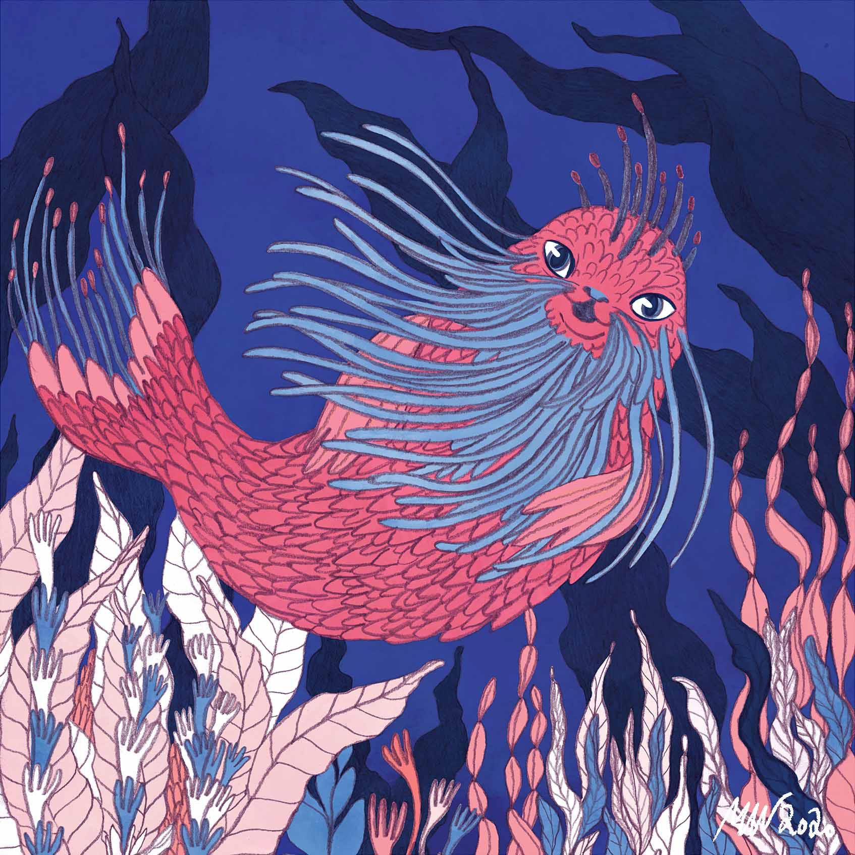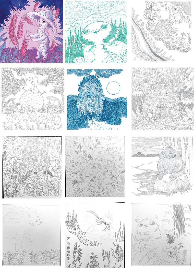 For the exhibition I created colorful illustrations of various Finnish mythical beings.