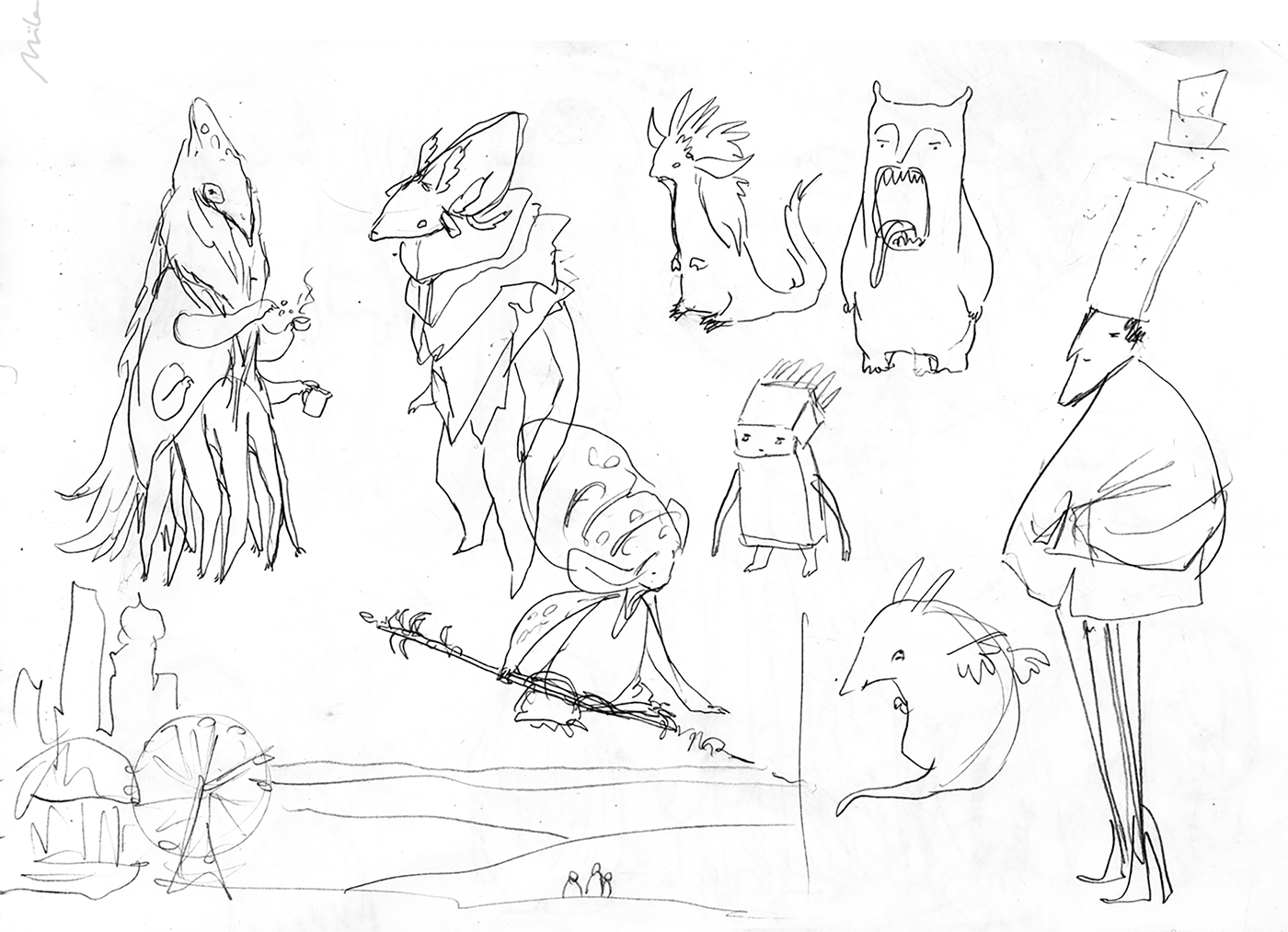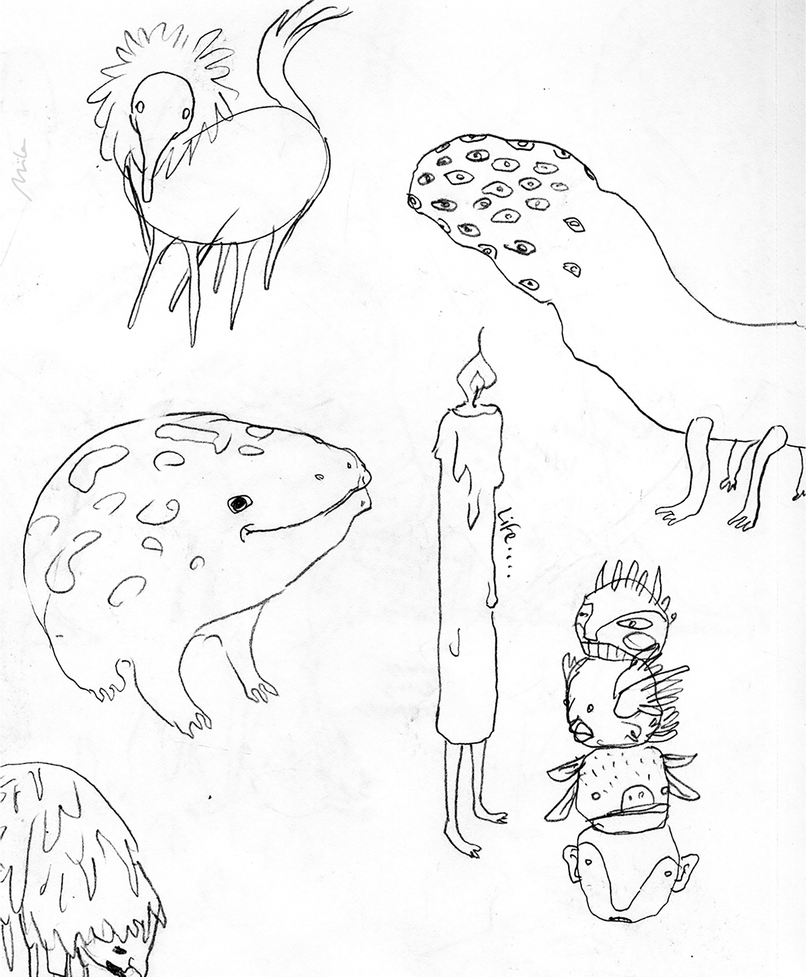 Some sketches for wall murals, animations, characters, editorials and such.